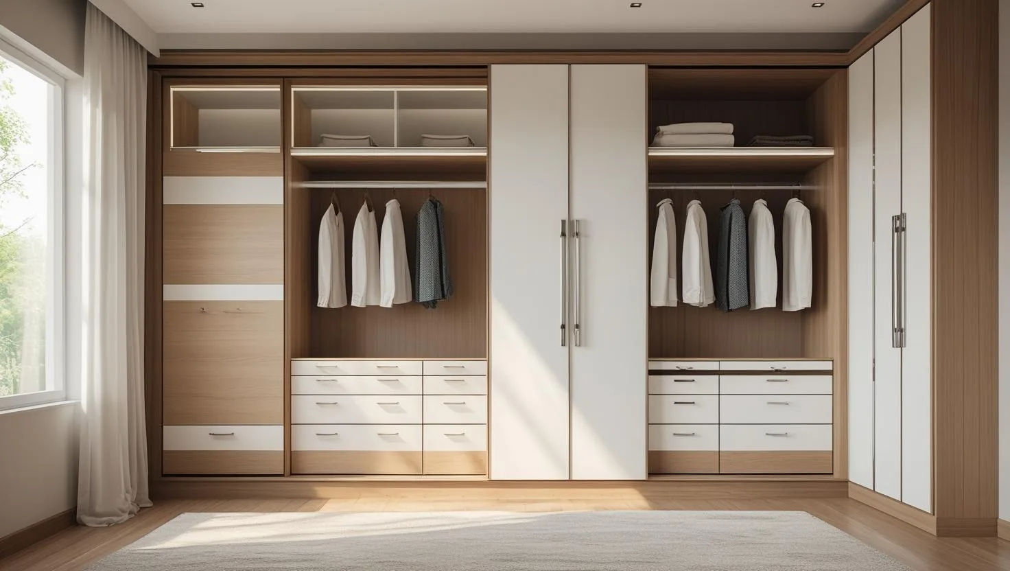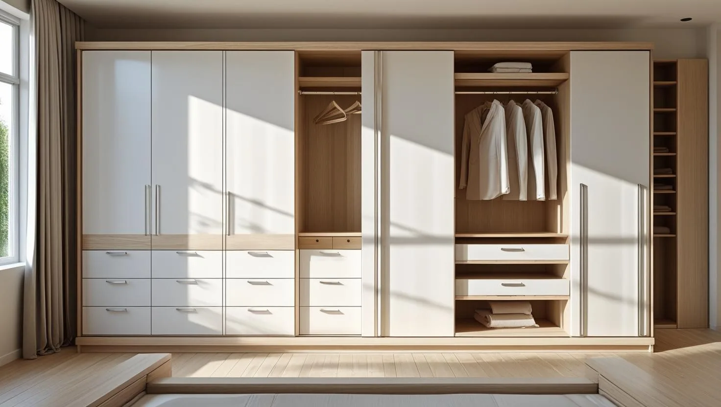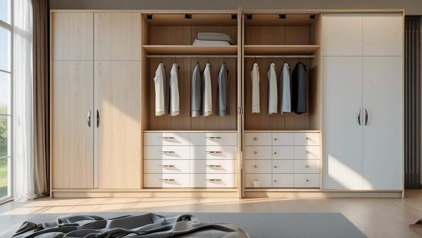 Tủ quần áo cánh mở: mở rộng tầm nhìn, dễ sắp xếp; phù hợp phòng đủ chiều sâu.