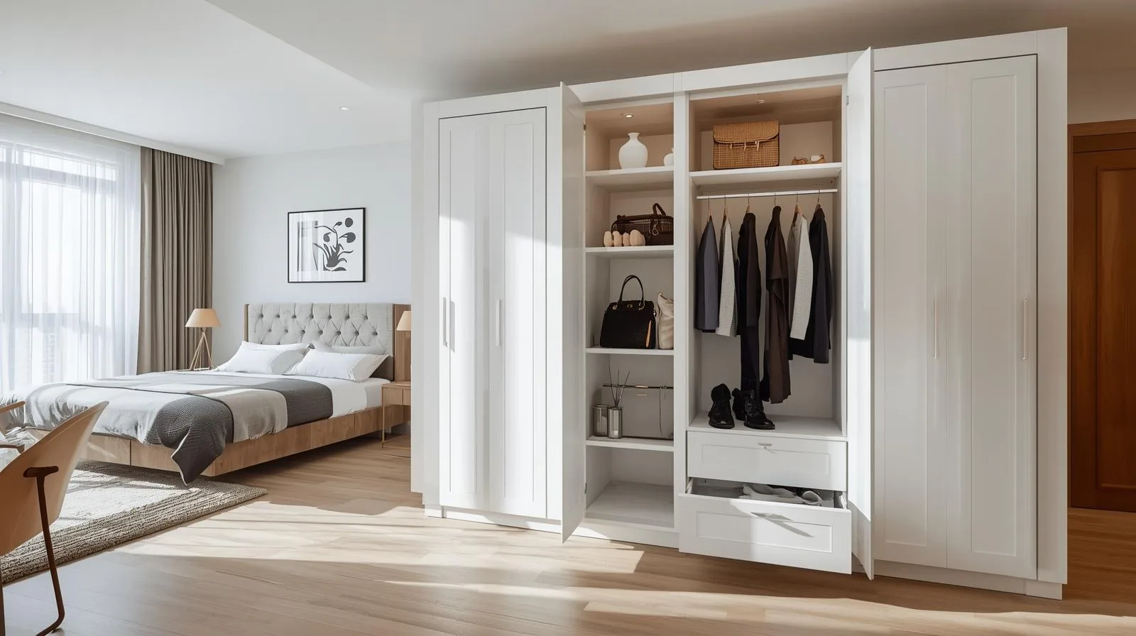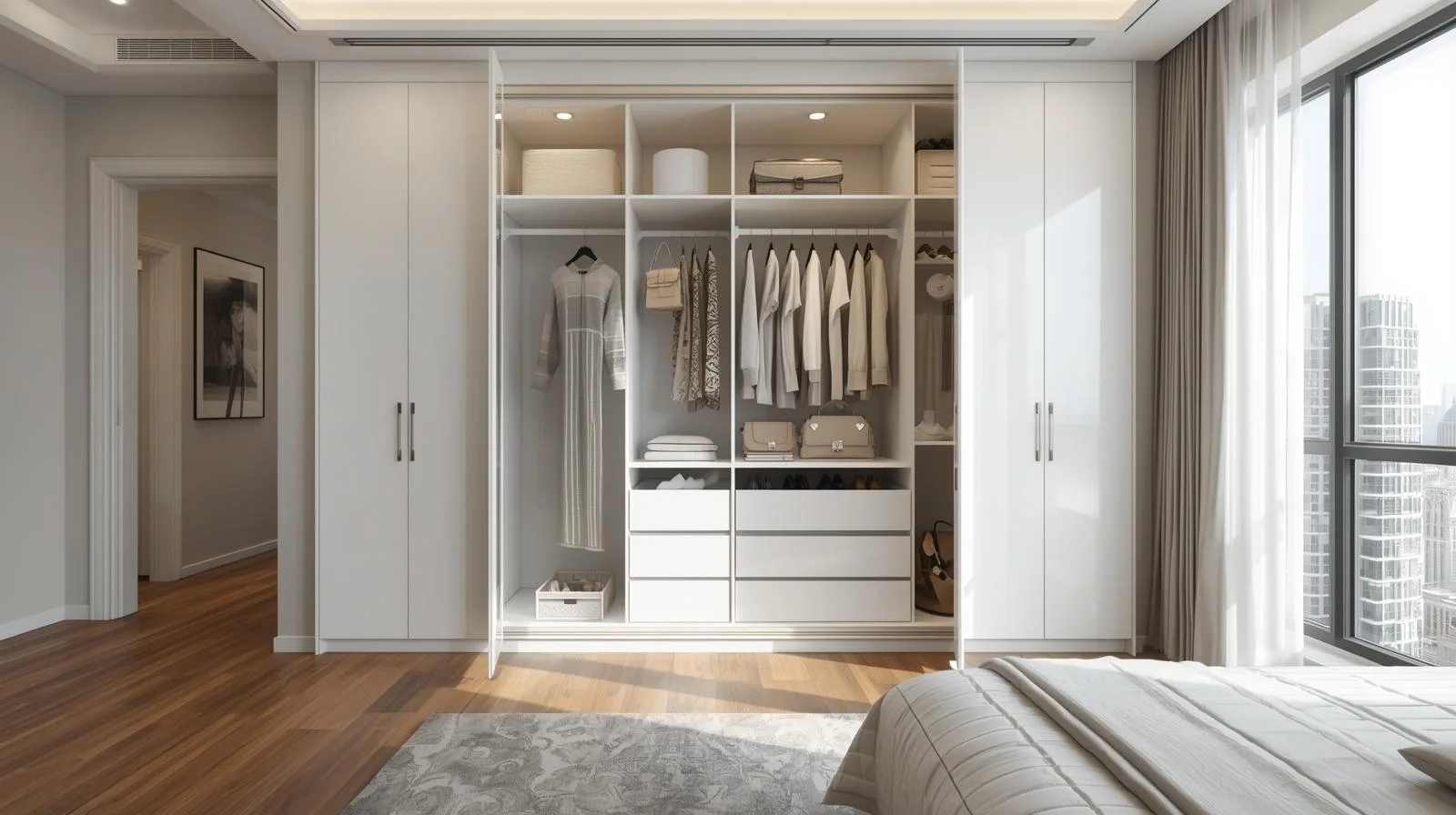 Tủ áo thông minh: Tích hợp đèn LED, kệ đa năng, giá treo tự động.