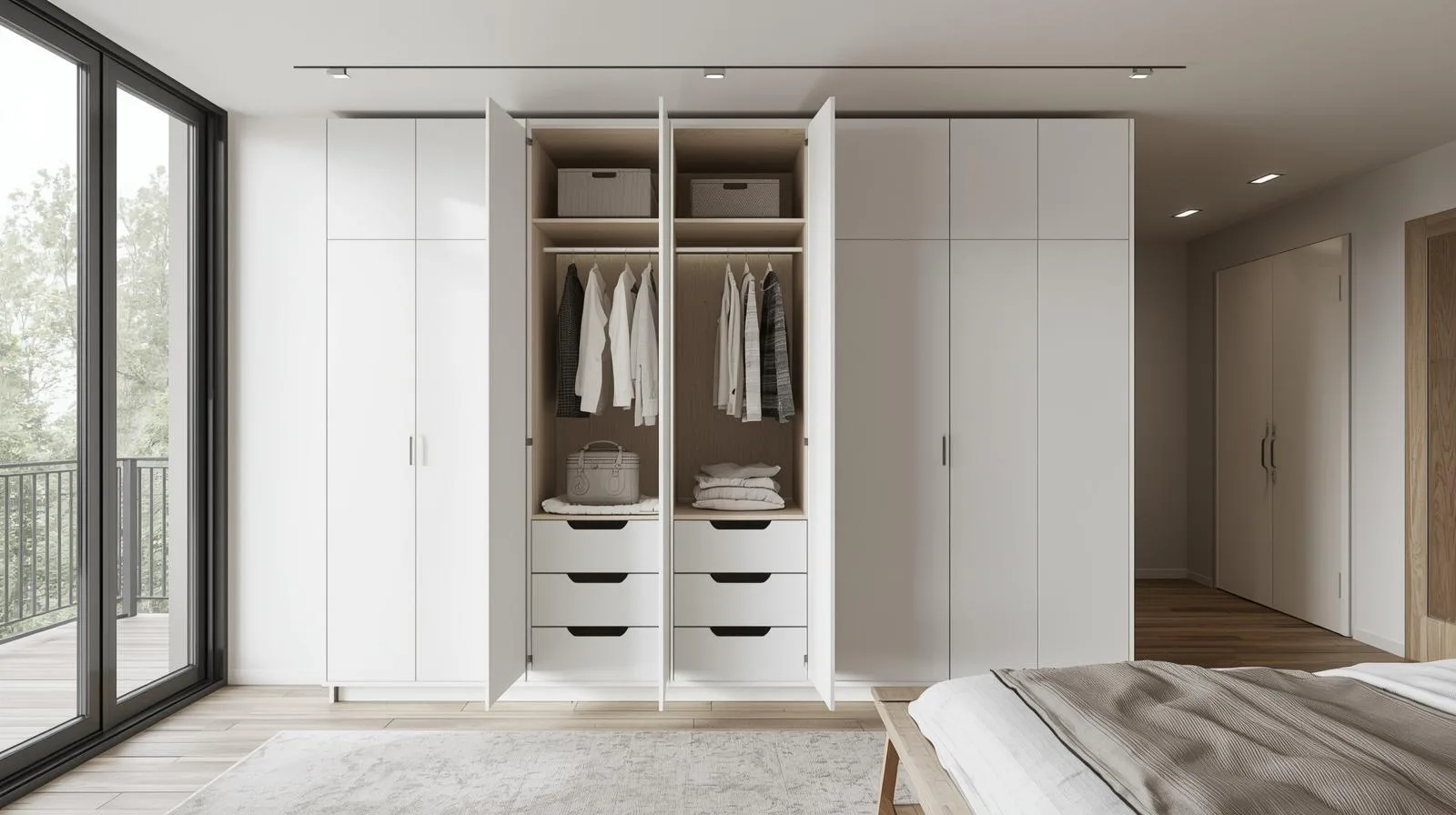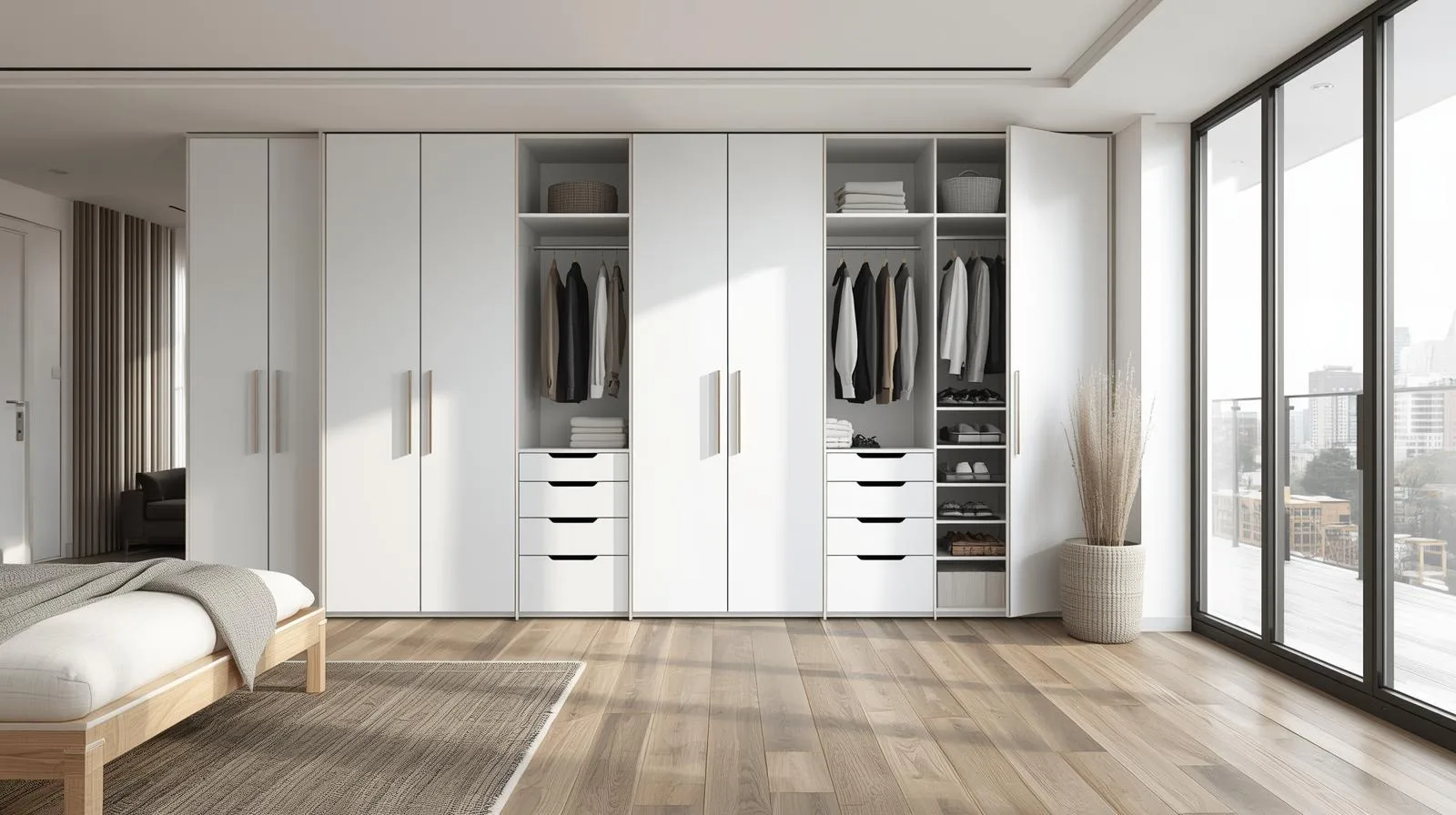 Phòng vừa (15–20m²): có thể chọn tủ áo 1m6 dạng 3–4 cánh mở, vừa gọn vừa đủ dung tích chứa cho 2–3 người.