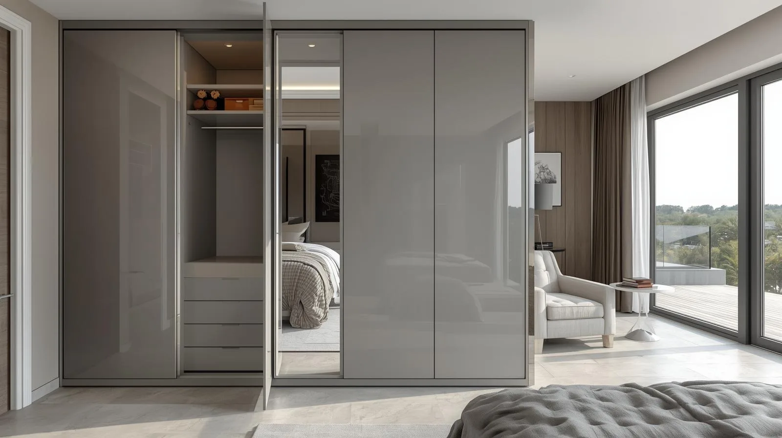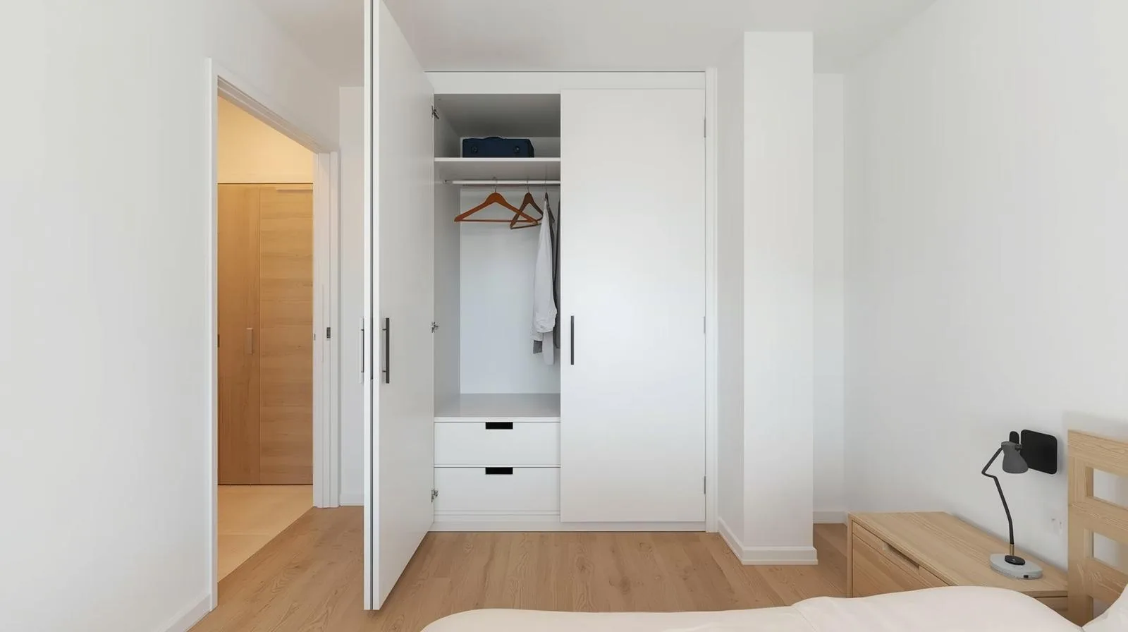 Phòng nhỏ: nên chọn tủ áo 2 cánh trượt hoặc âm tường.