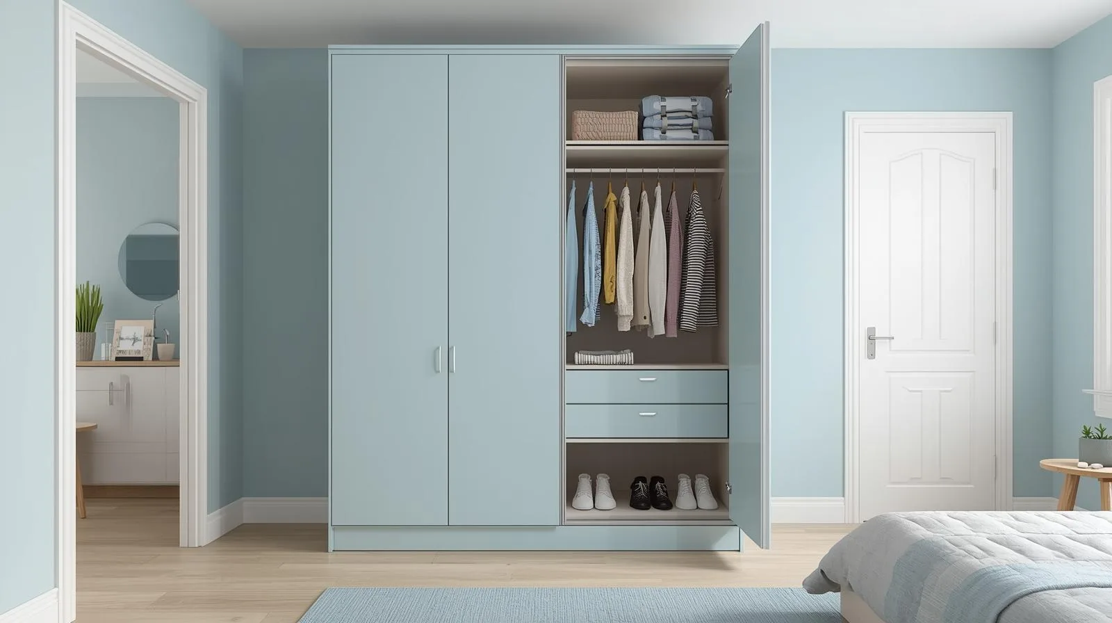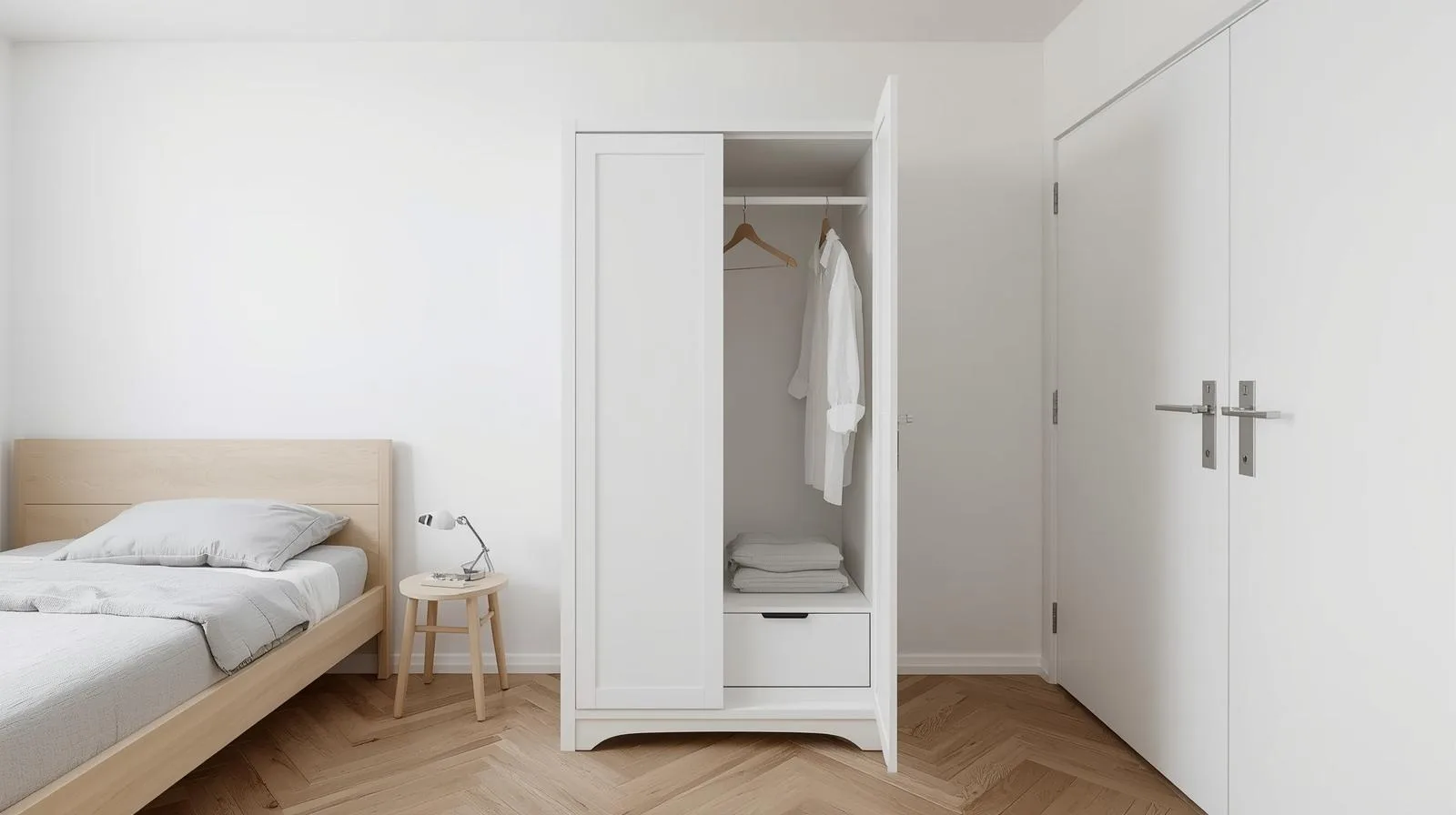 👉 Dù nhỏ gọn, nhưng một chiếc tủ quần áo 2 cánh vẫn có thể sắp xếp khoa học, đủ cho nhu cầu 1–2 người.