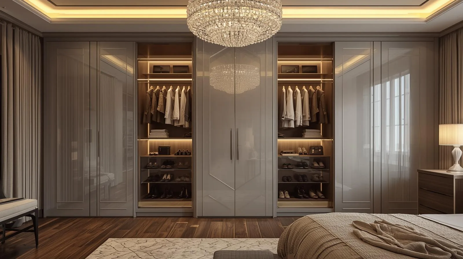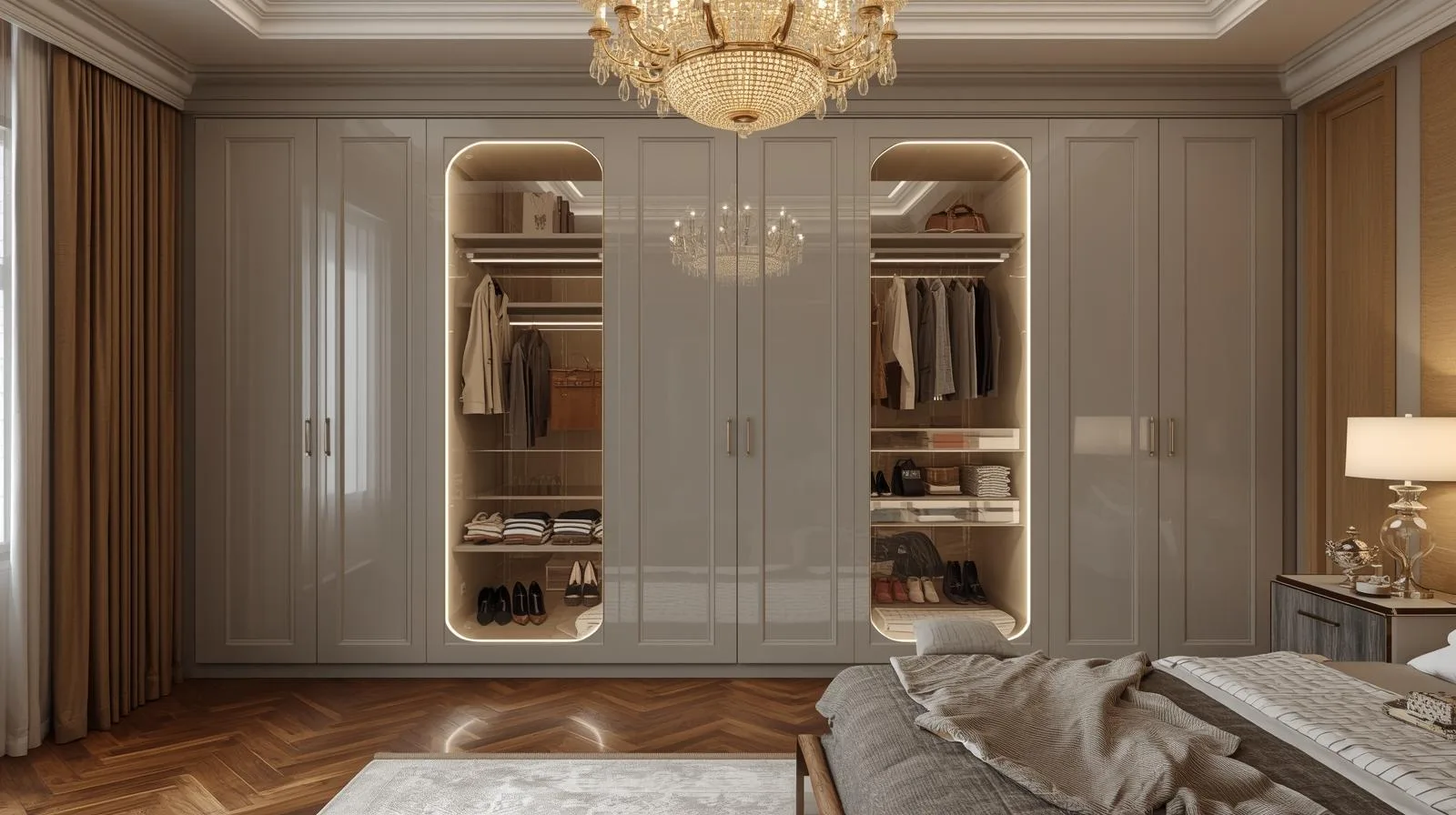 Trong các biệt thự hoặc căn hộ penthouse, tủ áo 2m4 thường được thiết kế dạng walk-in closet, kết hợp kệ trưng bày và gương lớn. Phong cách luxury với gỗ óc chó và kim loại mạ vàng được ưa chuộng nhất.