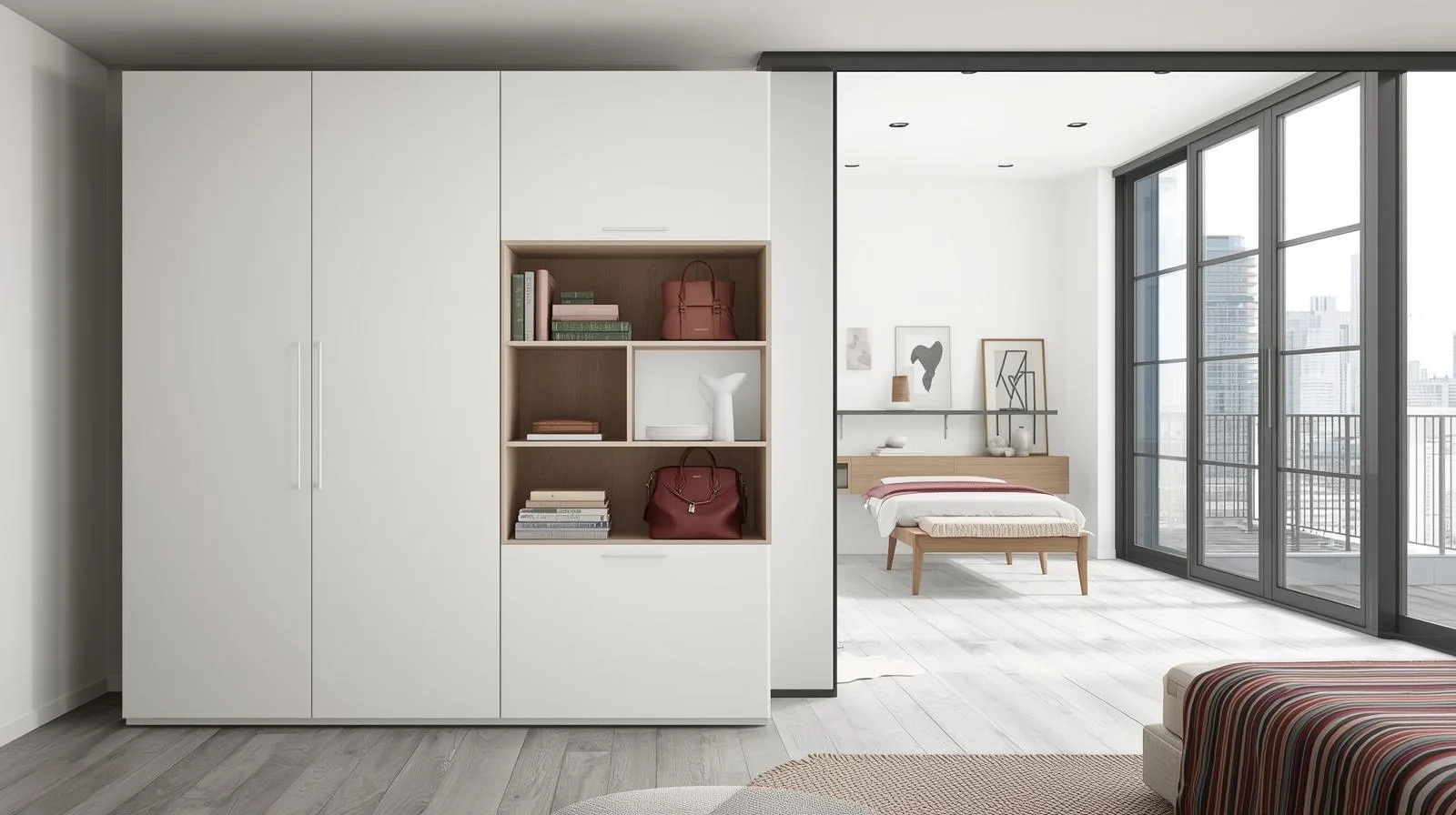 8. Ứng dụng thực tế của tủ áo kết hợp kệ trang trí