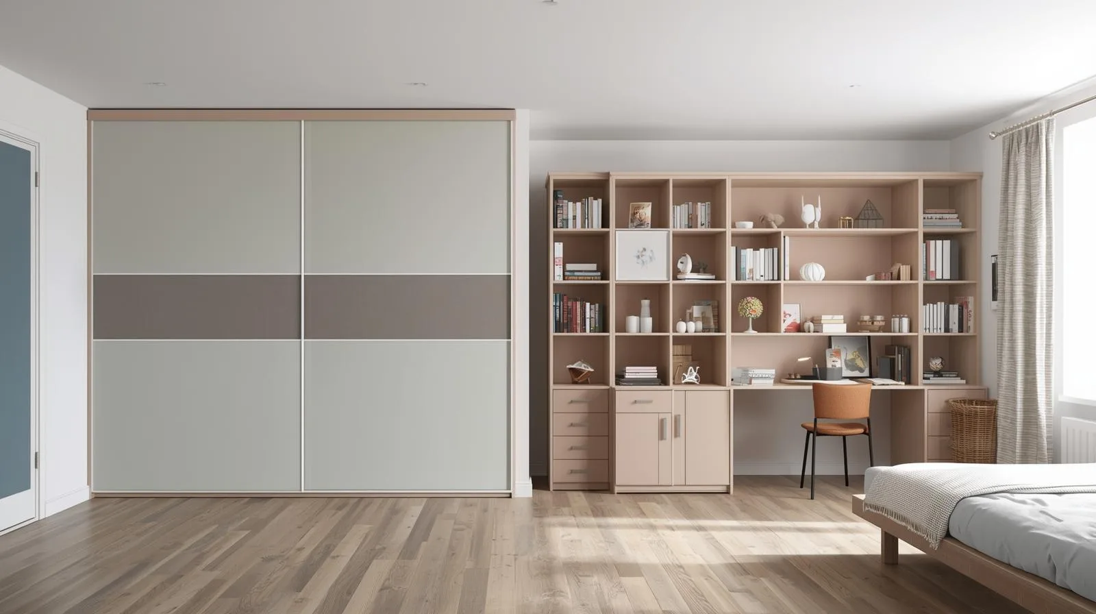 Phòng ngủ nhỏ: tủ áo 2–3 cánh kết hợp kệ mini.