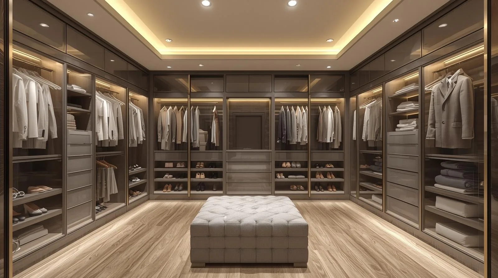 Tủ áo thiết kế riêng cho từng người: phân chia ngăn treo vest, váy dạ hội, giày sneaker hay đồng hồ.
